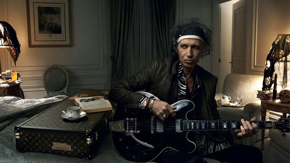 На снимке ветеран рока, который впервые согласился участвовать в рекламной фотосессии, изображен сидящим на кровати в гостиничном номере в Нью-Йорке. В руках Ричардс держит гитару, а рядом стоит чемодан марки "Louis Vuitton". "Некоторые путешествия нельзя передать словами", - гласит рекламный слоган.