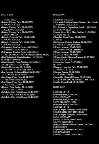 Аргентинский бутлежный лейбл "RSVP 2000" выпустил тройной DVD "A Bigger Bang Tour 2005-2006-2007", на котором собраны профессиональный съемки с последнего турне группы. Качество исходных материалов в анонсе фирмы не указывается; впрочем, имеется комментарий, что эти записи взяты из "источников в Сети". Содержание можно посмотреть здесь.