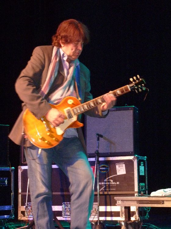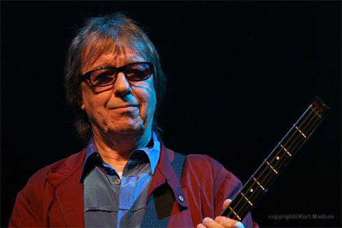 например, фильмы, в котором они играют на стадионе "Shea" или в Вашингтоне - во время их первого концерта в Америке. Из всех них я наиболее сдружился с Ринго... Я и сейчас иногда вижусь с ним". Джордж играл на одном из альбомов "Rhythm Kings" незадолго до своей смерти... Его гитарная партия была превосходной. Я выслал ему презент в виде моей книги о Марке Шагале, и после этого он написал мне чудесное письмо, в котором поблагодарил меня за то, что я попросил его записаться со мной. Он подписался как "Берт Уидон"). Кстати, недавно закончилось небольшое турне Билла и его группы "Rhythm Kings" по Дании. Фото сделано с концерта в Эсбьерге 24 сентября.