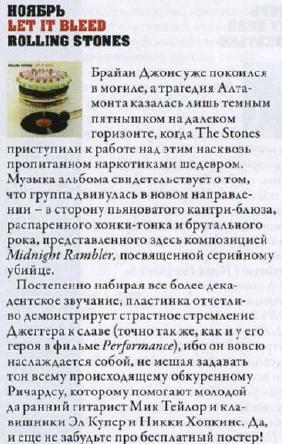 В 2010 г. почта Великобритании планирует издать серию марок, на которых будут изображены обложки лучших альбомов в истории рок-музыки: "The Division Bell" ("Pink Floyd"), "Ziggy Stardust" (Дэвид Боуи), "Tubular Bells" (Майк Олдфилд) и др., в том числе и "Let It Bleed" "Роллингов".
