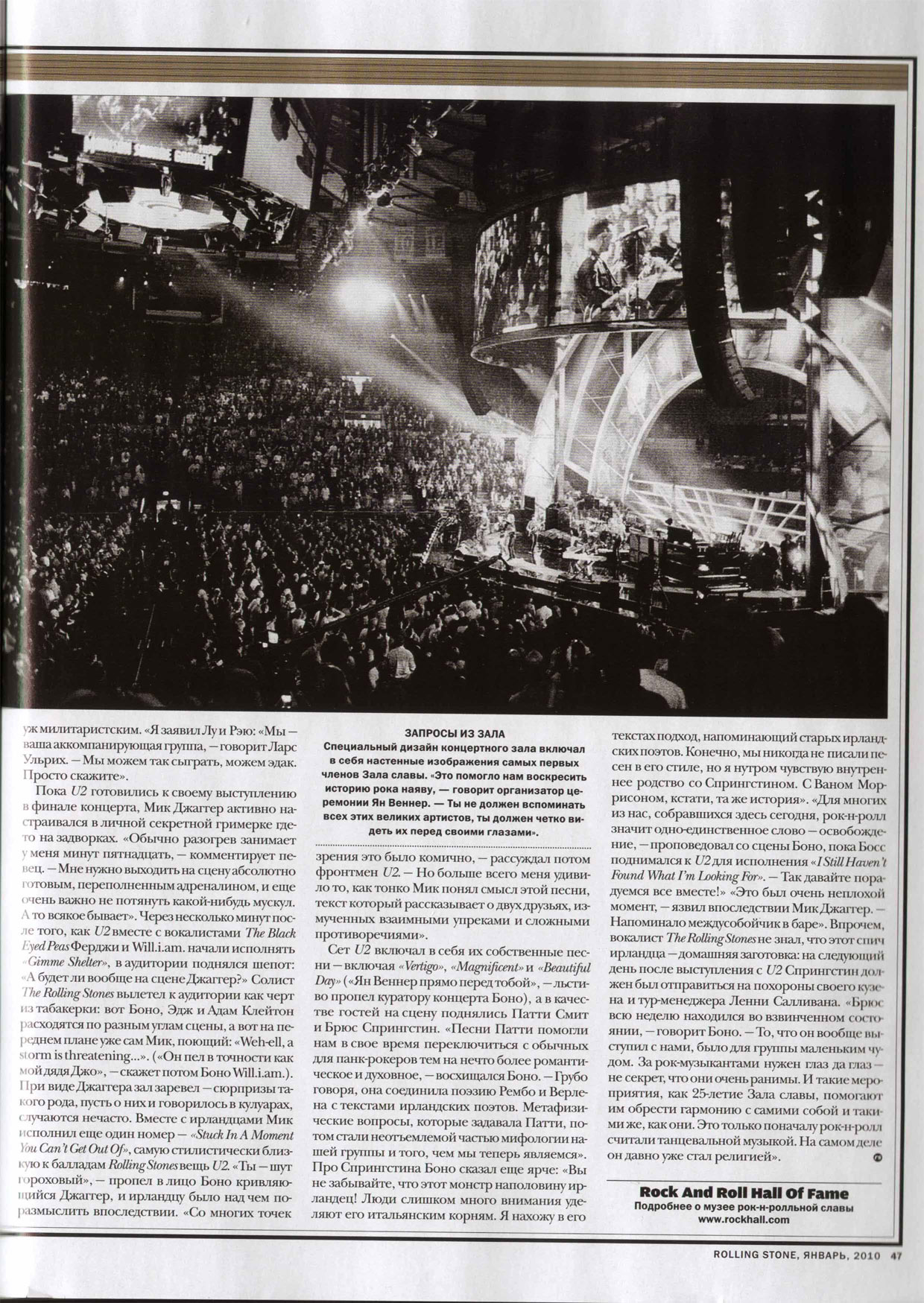 Январский номер журнала "Rolling Stone" вышел с Миком Джаггером на обложке и внутри - по случаю его выступления на очередной церемонии внесения в "Рок-н-ролльный Зал Славы" в США в прошлом году. Смотреть здесь: 1, 2, 3, 4. За сканы большое спасибо Нине Митрохиной (г. Липецк).