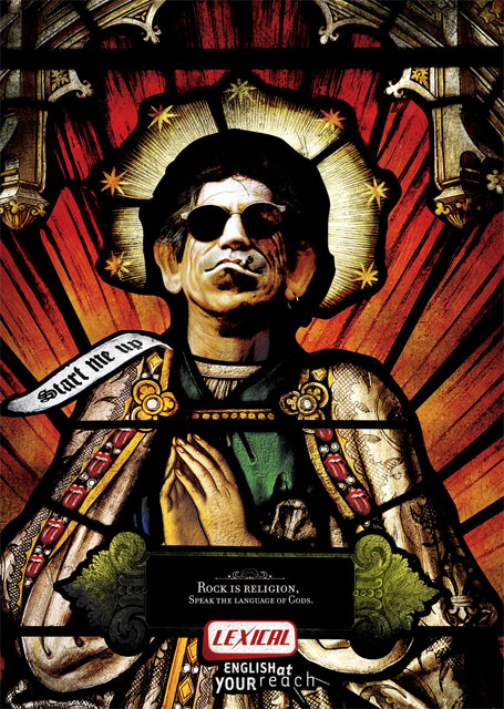 Изображение Кита Ричардса (слева) появилось в рекламе Интернет-службы переводов на английский язык "Lexical".