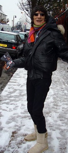 Вчера вечером Ронни Вуд был замечен с таинственной брюнеткой на матче по игре в снукер между Джимми Уайтом (его другом) и Марком Кингом на стадионе "Wembley". А за день до этого газетчики сфотографировали его после визита в магазин "Claygate Parade", где Ронни прикупил DVD с фильмом "Unborn"(фото).