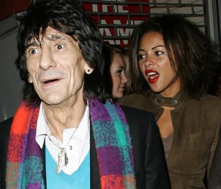 Ронни Вуд был замечен в ночь с 23 на 24 января в клубе "Ivy" в Ковент-Гарден в Лондоне, откуда переместился в клуб "100" на выступление дивы Линн Джэкмен и её группы "St. Jude". В середине концерта он вышел на сцену с гитарой, поджэмовал с группой в нескольких песнях и охотно попозировал фотографам. После завершения шоу он вместе с двумя спутницами, одна из которых все время жалась к его плечу, Вуд отправился в американскую пивную "Automat". Впрочем, он заявил, что больше не пьет. Единственное, что стало известно о его новой подруге (на фото) - это то, что она актриса из Бразилии.