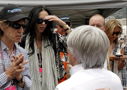 Фото слева: Мик Джаггер и Л'Рен Скотт на автогонках "Monaco Grand Prix" в Монако 16 мая.