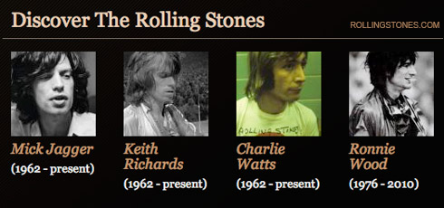 25.05.2010. Последние обновления официального сайта "Роллингов" поставили в тупик многих фанов (см. фото-скриншот): в то время как Мик, Кит и Чарли были отмечены как действующие участники команды, под портретом Ронни стояли даты "1976-2010". Сегодня утром надпись наконец-то изменилась! Кстати, среди других огрехов на новом сайте, скажем, можно найти упоминание о том, что у Билла Уаймена... 26 детей! :-D