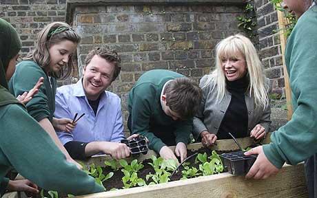 24.05.2010. Британская газета "Daily Telegraph" пишет: Джо Вуд пригласила школьников из учебного заведения "Kingsgate School" на экскурсию в свой сад, что находится близ её дома "Holmwood", который купил для семьи Ронни 12 лет назад. Джо рекламирует свой "органический" ресторан "Mr.Paisley's Lashings" и вспоминает, что несмотря на то, что Ронни никогда не занимался садом и огородом, он очень любил молодую картошку на обед, так как её готовил ему еще в детстве его покойный отец. Материал о Джо завершается рецептом её эксклюзивного салата из картофеля, редиски, майонеза, оливкового масла, дижонской горчицы и мёда. (На фото она вместе с ребятами и своим шеф-поваром Поттсом Доусоном.)