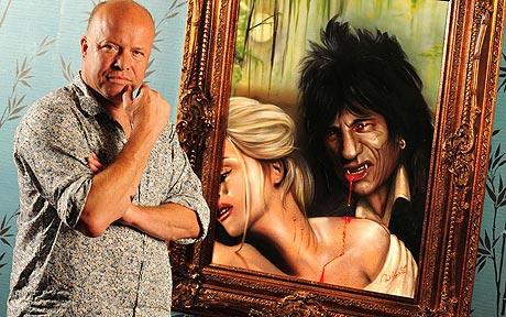 Джо Вуд сделала сенсационное заявление, разоблачающее художественные таланты её теперь уже бывшего супруга. Как утверждает она, её брат Пол Кэрслейк "часто помогал ему, особенно когда тот бывал занят - вот так! Он помогал ему, когда на очереди стояло множество картин, и когда Ронни не мог завершить их все. Ронни очень талантлив, но когда он занят, у него бывает мало времени". Бывший арт-дилер Вуда Джонатан Пул, впрочем, отказался комментировать это заявление: "Мне не хочется говорить по этому поводу ничего, потому что я больше не занимаюсь его работами". Теперешний же дилер Вуда, Бернард Пратт, настаивает на том, что его босс "полностью ответственен за свои собственные картины. Я помогаю ему с литографиями, но художник - это сам Ронни". Официальный представитель музыканта продолжает эту линию: "Это - полная неправда, будто бы ему кто-то помогал, и нам больше нечего к этому добавить". На фото слева: Пол Кэрслейк со своей нашумевшей картиной, изображающей Ронни в виде вампира, пьющего кровь у Джо.