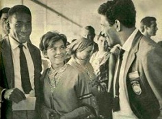 советской действительности беспорядками. На фото — Рита с футболистами Пеле и Гарринча в московском аэропорту Шереметьево.