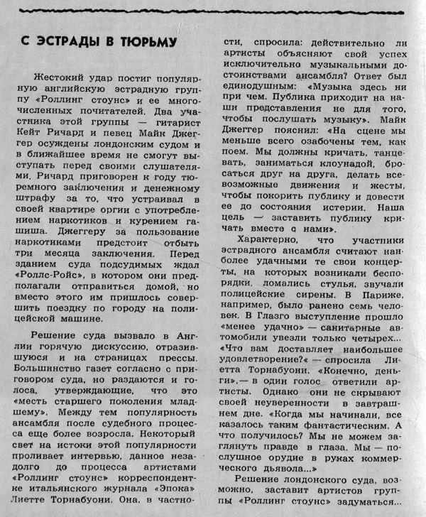 с "Роллингами" во время их визита в Италию, который прошел с 5 по 9 апреля и включал концерты в Болонье, Риме, Милане и Генуе... Однако, печатных документальных свидетельств именно об "этом" крамольном вопросе разыскать не удалось -
